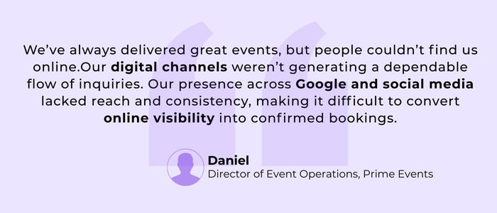 Despite strong event delivery capabilities, Prime Events faced several digital gaps that limited its growth: